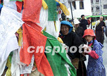 图;拉萨街头转经朝圣的祖孙 2001年06月22日 11:07 ![]() 西藏拉萨每天围绕大昭寺转经朝圣的藏民络绎不绝,一位藏族老奶奶带着身穿漂亮衣服的孙女走在转经的行列中。中新社记者 满会乔 摄