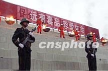 图:海口焚毁一批毒品 2001年06月26日 15:43 ![]() 六月二十六日是“国际禁毒日”,上午八时,海南省海口市在市人民广场举行焚毁毒品活动,当众焚毁了一批查获的毒品。中新社记者 莫成雄 摄