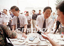 图:贾春旺强卫向市民发放“禁毒”宣传材料 2001年06月26日 16:29 ![]() 国家公安部部长贾春旺(右)北京市公安局长长强卫(左)二十六日在西单文化广场向市民发放禁毒宣传材料,以推动禁毒活动的开展。中新社记者 宋吉河 摄