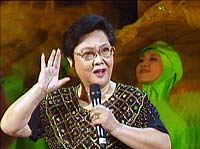 ![]() 中国歌唱家郭兰英二十九日在北京人民大会堂举行的《红旗颂》大型文艺晚会上演唱。