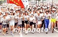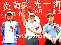 组图:"北京奥运·炎黄之光—海峡两岸长跑活动"抵京 2001年06月30日 17:46 ![]() “北京奥运·炎黄之光——海峡两岸长跑活动”30日在北京举行,台湾代表团团长杨传广(左)、中国奥林匹克委员会副主席张发强(右)与北京市奥申委常务副主席刘敬民出席,并祝北京申奥成功。中新社记者 赵振清 摄 ![]() “北京奥运·炎黄之光--海峡两岸长跑活动”6月16日从台北出发,经高雄、深圳、宁波、杭州、上海、无锡、南京、青岛八个站区30日抵京。来自海峡两岸的名人与首都3000多名各界代表会聚一堂,进行了申奥长跑活动,祝北京申奥成功。中新社记者 赵振清 摄