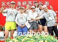 ![]() 台湾著名运动员吴道源、彭宏年、王瀚、陈怡安、裘海正等30日在北京参加海峡两岸为北京申奥助威长跑活动时,兴奋地高呼:北京·申奥·成功。中新社记者 赵振清 摄