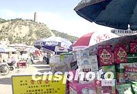 中国革命圣地陕北延安的宝塔山下,如今形成琳琅满目的百货批发市场,生意兴隆。中新社记者 贾国荣 摄