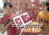 在陕北延安,延安姑娘精巧别致的民间剪纸艺术令人赞叹。图为她们的剪纸作品《毛泽东》。中新社记者 贾国荣 摄