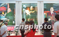 图:中共三代领导天安门讲话巨像展出 2001年07月01日 18:54 ![]() 中国革命历史博物馆一日举行规模巨大的“纪念中国共产党成立八十周年图片展”活动,许多参观者在展览的开篇--三代领导毛泽东、邓小平、江泽民在天安门城楼讲话的巨幅画像前,驻足观看。中新社记者 王丽南 摄