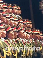 图:解放军歌舞团颂歌献给党 2001年07月02日 19:02 ![]() 中国人民解放军歌舞团七月在北京民族文化宫高唱《我们的队伍向太阳》,颂歌献给中国共产党八十华诞。中新社记者 史利 摄