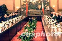 江泽民会见马耳他总统 对中马关系表示满意 2001年07月02日 20:43 ![]() 国家主席江泽民二日在北京与马耳他总统德马尔科(右二)会谈。中新社记者 满会乔 摄