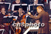 谭盾在香港特区成立四周年晚会上指挥乐团演奏