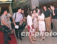 在北京的中外媒体记者三日下午在中国外经贸部谈判大楼采访“中日贸易磨擦问题正式磋商”。中新社记者 邹宪 摄