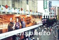 上海著名的商业街南京路步行街近日竖立起一幅巨大的中国三代领导人的画像,十分醒目。中新社图 姜煜 摄