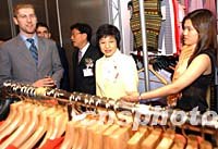 | 「香港时装节春夏系列2002」10日在会展中心举行,香港经济局长李淑仪(中)等嘉宾主持开幕典礼后参观展场。今届共有来自19个国家及地区的506家参展商参与,规模庞大。中新社图 洪少葵 摄 |