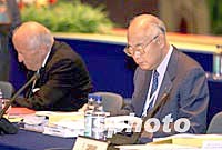 国际奥委会执委会会议11日在莫斯科世贸中心酒店举行,何振梁(右)出席了这次会议。中新社记者 王瑶 摄