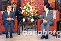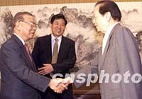 ![]() 国务院副总理钱其琛十二日在北京会见以许历农(左)为团长的台湾新党大陆事务委员会代表团。中新社记者 满会乔 摄