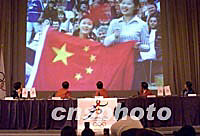 组图:北京申奥代表团答记者问 2001年07月12日 23:14 ![]() 五个奥运会申办城市12日在莫斯科斯拉夫酒店召开新闻发布会。北京申奥代表团成员楼大鹏、邓亚萍、屠铭德、王伟、廖晓冬(右至左)在发布会上。中新社记者 王瑶 摄 ![]() 12日,五个奥运会申办城市在莫斯科斯拉夫酒店召开新闻发布会。中国奥委会秘书长屠铭德北京发布会上请各国记者提问。中新社记者 王瑶 摄