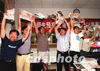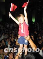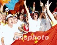 组图:北京大学生欢庆申奥成功 2001年07月14日 07:04 ![]() 十三日晚,在北京中华世纪坛,北京大学学生群情激昂,高唱国歌,庆祝北京申奥成功。中新社记者 钱兴强 摄 ![]() 北京清华大学师生十三日晚欢呼北京申奥成功。中新社记者 张勤 摄 ![]() 北京一名三岁半的儿童嘟嘟十三日晚和北京大学师生一起共庆北京申奥成功。中新社图 李刚 摄