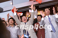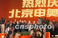 组图:国家领导人两地同庆申奥成功 2001年07月14日 07:35 ![]() 国家领导人江泽民、李鹏、朱镕基、李瑞环、胡锦涛等十三日晚在北京中华世纪坛和市民一同欢庆北京申奥成功。中新社记者 满会乔 摄 ![]() 率领中国政府代表团的李岚清副总理,在中国驻莫斯科大使馆欢呼北京申办二00八年奥运会成功。中新社记者 王瑶 摄