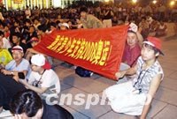 图:各地人群在天安门广场等待升旗仪式 2001年07月14日 11:10 ![]() 来自中国各地的年轻人经过一夜的狂欢之后,七月十四日清晨聚集在天安门广场,等待国旗的升起。中新社图 武仲林 摄