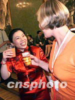 ![]() 7月13日,在莫斯科世界贸易中心举行的国际奥委会112次会议中,北京获得2008年奥运会举办权。中国北京申办代表团在中国驻俄罗斯大使馆举行答谢宴会及联欢会。中新社记者 王瑶 摄