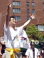 组图:纽约华人愿中国给世界一个奇迹 2001年07月16日 13:56 ![]() 七月十五日中午,纽约的花俊雄先生穿起八年前北京首次申奥时穿过的T恤衫,参加美东地区庆祝北京申奥成功大会。他说:“我们终于胜利啦!世界给了中国一个机会,七年后,中国会给世界一个奇迹。中新社记者 陈建 摄 ![]() 美东地区侨学界七月十五日在纽约华埠集会,欢庆北京申奥成功。当台上的女歌唱家高歌《我爱你,中国》时,一位华裔女青年情不自禁地跟着吟唱起来。中新社记者 郭健 摄