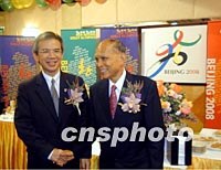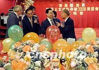 组图:香港体育界庆祝北京申奥成功 2001年07月18日 10:56 ![]() 香港体育界17日晚举行盛大联欢会,热烈庆祝北京申办2008年奥运会成功,全国政协副主席霍英东与民政事务局长林焕光出席晚会,共庆中国体坛盛事。中新社传真 洪少葵 摄 ![]() 全国政协副主席霍英东、中联办副主任王凤超、康乐及文化事务署长梁世华等出席香港体育界17日晚举行的盛大联欢会,热烈庆祝北京申办2008年奥运会成功。中新社传真 洪少葵 摄
