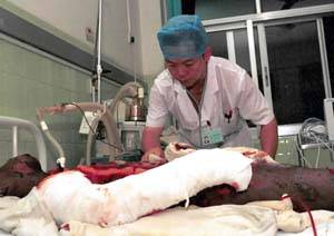 这是南宁市第一人民医院烧伤科医生在抢救骆贵立。新华社记者 陈天湖 摄