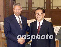 图:江泽民会见美国国务卿鲍威尔 2001年07月28日 17:51 ![]() 中国国家主席江泽民今天下午在人民大会堂会见了到访的美国国务卿鲍威尔,宾主就发展中美双边关系等问题进行交谈。中新社记者 满会乔 摄