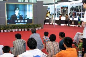 观众席地而坐观看反邪教影片。新华社记者 于小平 摄