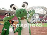 图文:大运会开幕式有新意 匠心别具耳目一新 2001年08月01日 08:13 ![]() 31日的二十一届大运会的开幕式演练现场上,身着吉祥物“拉拉”服饰的轮滑小演员正在练习“微笑”。开幕式期间,将有数十只“拉拉”在场中进行滑稽表演。中新社图 郑萍萍 摄 ![]() 二十一届世界大学生运动会开幕式仪仗队三十一日在北京工人体育场内加紧演练,由八名大学生组成的会徽旗队将在八月二十二日的开幕式上率先亮相。中新社图 郑萍萍 摄