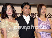 影星林熙蕾、刘德华、应采儿(左起)8月1日在香港出席电影《全职杀手》记者会,《全职杀手》将于后天正式在香港公映。中新社图 邓庆乐 摄