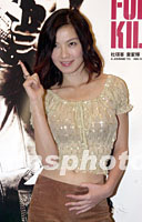 影星林熙蕾1日在香港出席电影《全职杀手》记者会,她摆出一副开枪的模样,配合影片宣传。中新社图 邓庆乐 摄