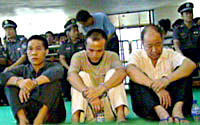 图:中国首宗伪造二十元版人民币案开庭审理 2001年08月03日 20:53 ![]() 中国首宗伪造二十元版人民币案三日在广东省汕尾市中级人民法院开庭审理,八名被告共印制九九年版二十元人民币一千九百三十万元,为中国首例。