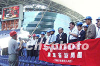 图:香港访问团参观九运会场馆 2001年08月04日 19:24 ![]() 香港广东社团总会广东访问团,四日在广东省副省长许德立和省侨办主任吕伟雄的陪同下参观了九运会场馆,并向九运筹委会捐赠二十万元港币。中新社图 罗仰明 摄