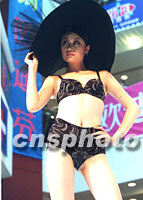 ![]() 身着“神采飞扬”内衣的模特十日在北京东安市场向众人展示。黑色变形斑马纹图案与透明网纱组合出传统与现代的平衡,显得协调而优雅。中新社记者 史利 摄