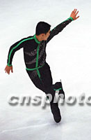 中国第九届运动会花样滑冰决赛十二日晚落下帷幕,来自吉林的李成江捧走男子单人滑冠军。中新社图 郑萍萍 摄