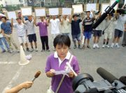 图文:清华学子到日本驻华使馆抗议小泉参拜 2001年08月15日 16:39 ![]() 法新/图 ![]() 法新/图 ![]() 路透/图 中新网北京8月15日消息:今天上午,约30名清华大学学子向日本驻华大使馆递交了抗议书,对日本首相小泉纯一郎13日参拜靖国神社一事表示强烈的愤慨。今天是抗战胜利日本投降五十六周年纪念日。 目击者说,约有三十多名清华大学学生在日本大使馆门前打出“打倒日本帝国主义”的横幅标语,高唱爱国主义歌曲。 一名不愿透露姓名的女学生高声宣读了抗议书:“我们强烈要求日本政府向中国以及其他受过日本侵略的亚洲人民做出正式道歉!” 据中国日报网站报道,这些学生在日本大使馆外一边挥舞着没有任何记号的空白卡片,一边高呼“打倒日本帝国主义!”“中国人民万岁!”“你们(日本)再也不可能欺凌中国了!” 一名姓刘的学生说:“这些空白卡就意味着:对于日本政府的胡说八道,我们觉得没有什么好说的,他们不值得我们跟他们说话。” 目击者表示,抗议活动克制、有序。守卫大使馆的警察说,根据交通规则他们可以停留十分钟。 整个示威活动大约进行了十五分钟,随后,示威学生乘坐汽车离开了日本大使馆。 |
