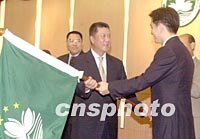 图:何厚铧向参加大运会的澳门体育代表团授旗 2001年08月19日 21:06 ![]() 即将前往北京参加第二十一届世界大学生运动会的澳门体育代表团十七日向行政长官何厚铧辞行,图为何厚铧向代表团团长黄有力授旗。中新社传真 宗金柱 摄