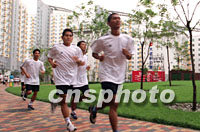 图:泰国运动队员在大运村训练 2001年08月20日 19:15 ![]() 泰国男足队员十九日冒着细雨在大运村内的甬道上晨练。被青草绿树环绕的大运村占地22万平方米,可同时容纳七千多名运动员。中新社图 郑萍萍 摄