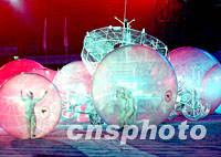 组图:二十一届大运会开幕式(1) 2001年08月21日 18:40 ![]() 第二十一届大运会开幕式表现绿色北京的舞蹈。中新社记者 李刚 摄 ![]() 在第二十一届大运会开幕式表演中,孩子们踩着透明的球体在热烈的节奏中演绎着信息时代。中新社记者 李刚 摄