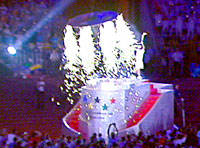 组图:大运会揭开主火炬点燃之谜 2001年08月22日 22:00 ![]() 在开幕式上随着奥运冠军田亮点燃飞碟形点火器,飞碟升空后落下,准确点燃了第21届世界大学生运动会主火炬,大运会开幕式的主火炬如何点燃的谜底终于揭开。 ![]() 北京二十一届大运会主火炬点燃之谜随着飞碟的升空揭开,由奥运会跳水冠军田亮引燃的飞碟腾空而起,奔向主火炬台。