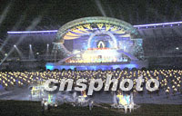 图:大运会开幕式演绎敦煌的飞天梦境 2001年08月22日 22:54 ![]() 二十一届大运会开幕式“你好,二十一世纪”文艺晚会二十二日晚在北京举行,演员们手捧烛火演绎敦煌飞天的梦境。中新社图 郑萍萍 摄