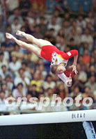 中国女队在世界大运会女子体操团体项目的比赛中一举夺金,董方宵在平衡木上飞跃自如。中新社记者 郑萍萍 摄