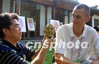 图:北京艺术家为保加利亚运动员塑像 2001年08月25日 16:53 ![]() 第二十一届世界大学生运动会25日在北京民族园举办中外大学生联欢活动,一位北京民间艺术家为保加利亚男篮队员现场塑出形象逼真的头像。中新社记者 李刚 摄 |