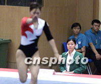 昔日的中国体操女皇莫惠兰,出现在大运会女子体操赛场上,第一次在世界大型赛事上做边裁。中新社图 郑萍萍 摄
