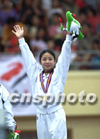 朝鲜小将孙银姬在二十六日进行的女子跳马项目的比赛中摘得该项目金牌,获奖后禁不住热泪满眶。中新社图 郑萍萍 摄