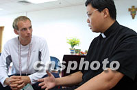图:美国运动员在大运村和北京神父交谈 2001年08月26日 20:04 ![]() 正在北京参加21届大运会的美国田径运动员迈克,26日来到大运村专门为各国运动员准备的宗教活动室,向北京天主教神父杨宇了解大运村宗教活动情况。中新社记者 李刚 摄