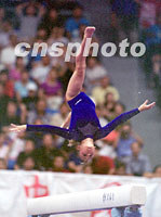 图:俄罗斯小甜甜体操赛场一箭双雕 2001年08月27日 15:56 ![]() 刚刚在女子体操个人全能赛上摘走冠军的俄罗斯小甜甜叶洛娃,在二十六日的四项单项赛上,再次技惊四座,夺得平衡木项目金牌。中新社记者 郑萍萍 摄 |