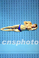 一名选手在男子10米跳台决赛中的空中凝固动作宛如抱枕而眠。中新社图 刘殊瑾 摄