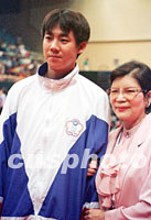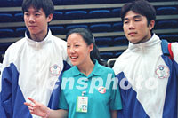 组图:中国台北选手蒋澎龙、张雁书获乒乓球双打季军 2001年08月29日 14:35 ![]() 中国台北选手蒋澎龙(左)、张雁书获得大运会男子乒乓球双打决赛中获得季军,蒋澎龙所在台湾中华文化大学的校长林彩梅(右)十分欣慰。中新社图 刘殊瑾 摄 ![]() 中国台北选手蒋澎龙、张雁书获得大运会男子乒乓球双打决赛中获得季军,赢得现场观众的赞赏。图为热情的北京姑娘与他们合影。中新社图 刘殊瑾 摄