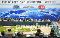 ![]() 二十九日在上海开幕的第八届APEC中小企业部长会议上,与会官员和代表纷纷关注上海的媒体信息。中新社记者 潘索菲 摄
