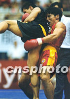 图文:九运会武术散打赛结束 山东队收获最丰 2001年08月29日 23:00 ![]() 九运会武术散打决赛八月二十九日晚在广东南海降下帷幕,解放军队柳海龙夺得武术散打七十五公斤级别的第一名。中新社记者 陈文 摄